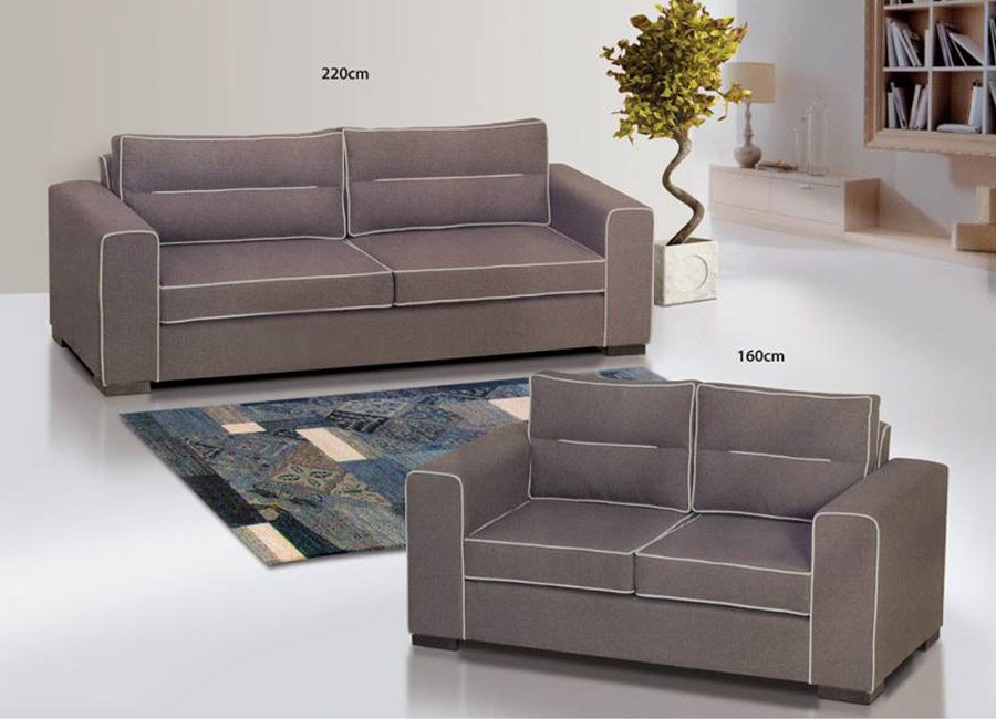 Έπιπλα και σαλόνια σε εντυπωσιακά σχέδια και στην καλύτερη ποιότητα κατασκευής. 3θέσιος και 2θέσιος καναπές σαλόνι σε απλή γραμμή και μοναδικό design με σχέδια φιλέτα, τόσο στον σκελετό όσο και στα μαξιλάρια. Μπορείτε να επιλέξετε μέσα από μία μεγάλη ποικιλία δειγματολογίων, αδιάβροχα-αλέκιαστα υφάσματα και να δημιουργήσετε για τον χώρο του καθιστικού ένα όμορφο αισθητικά αποτέλεσμα. Ο σκελετός είναι απο οξιά και τα μαξιλάρια καθίσματος απο εξαιρετικής ποιότητας λάστιχα με επαναφορά. Τα μαξιλάρια πλάτης αποτελούνται απο κομφορέλ. Διαστάσεις: 3Θέσιος: 220 × 90, 2Θέσιος: 160 × 90