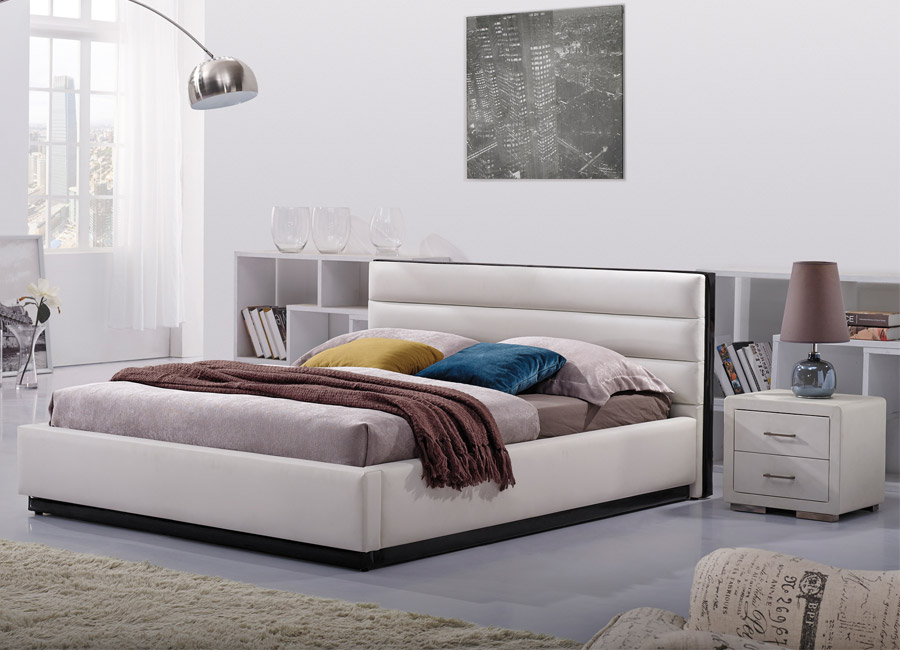 Κρεβάτια διπλά απο δερματίνη σε πολλά σχέδια και απίστευτα χαμηλές τιμές. Μοναδικού σχεδιασμού κρεβάτι σε λιτή και απλή γραμμη με ξεχωριστό κεφαλάρι με ραφές που θα εναρμονιστει απόλυτα μέσα στον προσωπικό σας χώρο με τα υπόλοιπα έπιπλα και θα σας δώσει νότα χαλάρωσης και ξεκούρασης. Παράγεται σε λευκή δερματίνη για στρώμα 160 × 200 (εξωτερική διάσταση: 179 × 225 × 89). Περιλαμβάνει ανατομικό τελάρο.