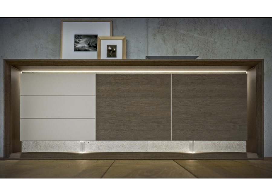 Ίσιες ήρεμες γραμμές, με το εσωτερικό στο κεντρικό περίγραμμα να δημιουργεί την ψευδαίσθηση ότι αιωρείται. Ο κρυφός φωτισμός που διαχέεται σε 2 πλεξιγκλάς κάθετα πόδια δημιουργεί μία μοναδική ατμόσφαιρα στο χώρο. Μεγάλος αποθηκευτικός χώρος και ευχρηστία. Συνδυάζεται με την τραπεζαρία & την σύνθεση Arion. Τον μπουφέ Arion τον κατασκευάζουμε σε διαστάσεις, χρώματα και ξύλο της επιλογής σας. Η τιμή αφορά κατασκευή σε ξύλο δρυς εξ' ολοκλήρου ή σε διχρωμία με λάκα. Σε χρώμα λάκας εξ' ολοκλήρου, καρυδιάς ή ευκάλυπτου υπάρχει επιβάρυνση. Με τον φωτισμό υπάρχει έξτρα χρέωση + 80 €.