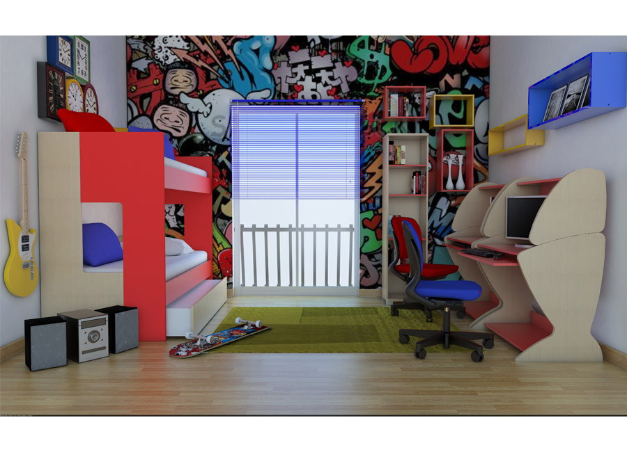 Παιδικά έπιπλα που τονίζουν με ιδιαίτερα σχέδια και χρώματα τον χώρο του παιδιού σας. Πλήρες σετ για παιδικό δωμάτιο από μελαμινούχο υλικό, υψηλής ποιότητας και αντοχής σε μοντέρνους χρωματικούς συνδυασμούς που περιλαμβάνει: 1 Κουκέτα με σκάλα και κάγκελο, 2 ανατομικά πλαίσια, 2 γραφεία και 1 βιβλιοθήκη. Αναλυτικά, διαστάσεις και τιμές ανά τεμάχιο: