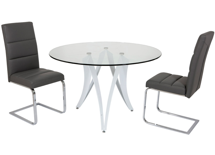 Η συγκεκριμένη τραπεζαρία αποτελεί την ιδανική λύση για το χώρο σας. Κατασκευάζεται από υλικά αρίστης ποιότητας και είναι από τα έπιπλα που εξυπηρετούν ακόμη και τις πιο δύσκολες απαιτήσεις. Είναι σε μοντέρνο σχεδιασμό, με τη βάση του να τραβά την προσοχή. Αποτελείται από τραπέζι νίκελ με κρύσταλλο και καρέκλες με νίκελ και δερματίνη. (Χρώμα κρυστάλλου τραπεζιού: διαφάνεια & χρώμα δερματίνης καρέκλας: μαύρο, λευκό, μόκα).
