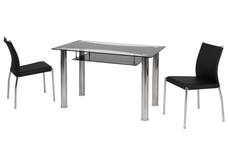 Ίσως μια από τις καλύτερες επιλογές σε έπιπλα τραπεζαρίας. Συνδυάζει την απλότητα και την αισθητική με τρόπο μοναδικό. Με εξαιρετικά μοντέρνα βάση με βοηθητικό καπάκι στο κάτω μέρος, υπόσχεται να τραβήξει την προσοχή και να δώσει μια νότα πολυτέλειας στο χώρο σας. Τραπέζι νίκελ με κρύσταλλο και καρέκλες με νίκελ και δερματίνη. (Χρώμα κρυστάλλου τραπεζιού: μαύρο, αμμοβολή, κρεμ & χρώμα δερματίνης καρέκλας: μαύρο, εκρού).