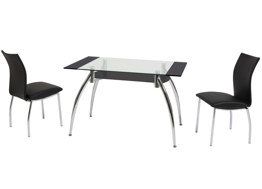 Μοναδικής ποιότητας έπιπλα τραπεζαρίας που παράγονται από ποιοτικά υλικά για αντοχή στον χρόνο και σε πραγματικά χαμηλές τιμές. Τραπεζαρία με εξαιρετικά χαρακτηριστικά στο τραπέζι με τα λοξά πόδια και το design στο κρύσταλλο αλλά και την μοναδικού σχεδιασμού καρέκλα. Τραπέζι νίκελ με κρύσταλλο και καρέκλες με νίκελ και δερματίνη (χρώμα δερματίνης καρέκλας: μαύρο, λευκό, καφέ, εκρού, μόκα, γκρι, μαύρο-πλάτη + λευκό-κάθισμα).