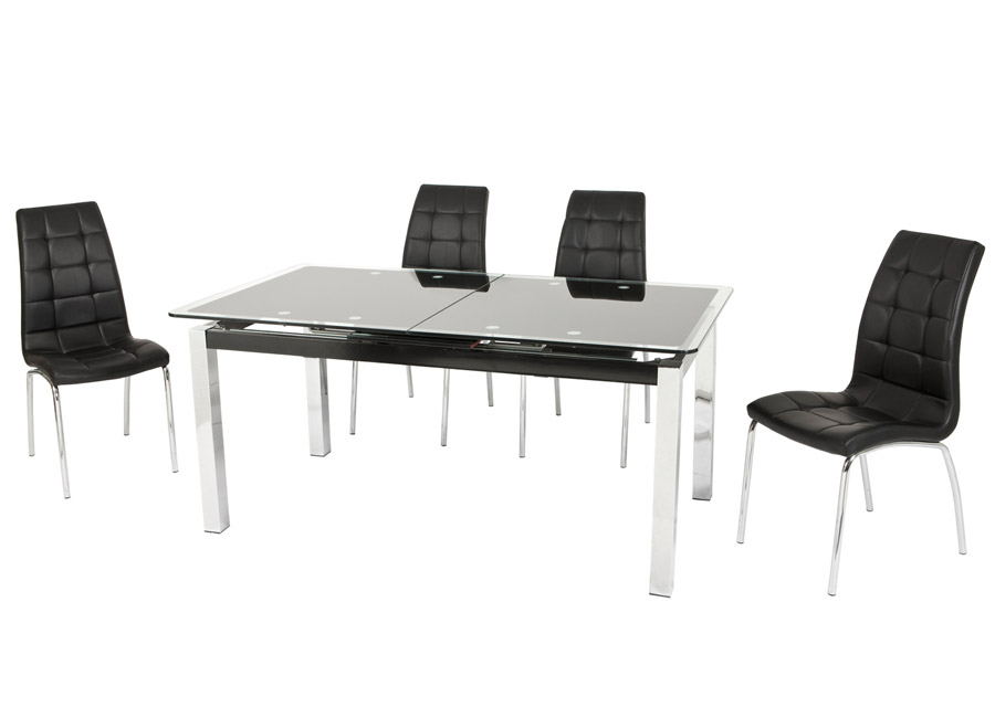 Μοναδικής ποιότητας έπιπλα τραπεζαρίας για το καθιστικό ή την κουζίνα. Μοντέρνας σχεδίασης τραπέζια και καρέκλες νίκελ που δημιουργούν μοναδικές αισθήσεις. Τραπέζι νίκελ με κρύσταλλο και καρέκλες με νίκελ και δερματίνη (χρώμα κρυστάλλου τραπεζιού: μαύρο, αμμοβολή, γκρι & χρώμα δερματίνης καρέκλας: μαύρο, λευκό, καφέ, εκρού, μόκα, γκρι).