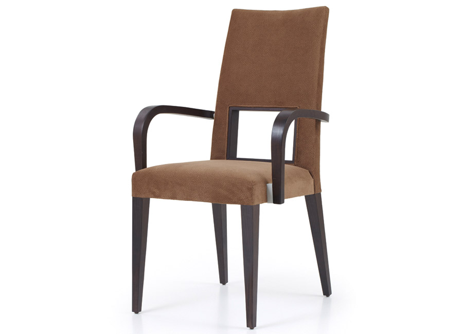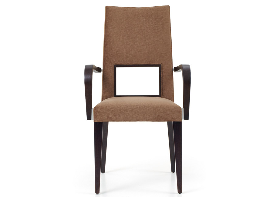 Μία εντυπωσιακή σχεδιαστικά καρέκλα συνδυαζόμενη με το ανάλογο τραπέζι μπορεί να δώσει στον χώρο του καθιστικού μία ευχάριστη νότα και αισθητική τελειότητα. Η συγκεκριμένη καρέκλα ντυμένη με το κατάλληλο σε χρώμα ύφασμα είναι η καλύτερη επιλογή για κάποιον με απαιτητικά γούστα. Παράγεται με μπράτσο ή χωρίς με εγγυημένη ποιότητα κατασκευής και σας δίνουμε την δυνατότητα να επιλέξετε τα δύο ξύλινα μπροστινά ποδαράκια να είναι ίσια ή λοξά.