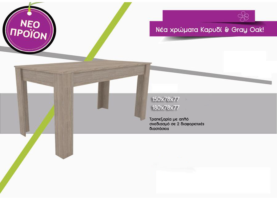 Κομψά και εντυπωσιακής σχεδίασης τραπέζια που συμπληρώνουν την διακόσμηση του σαλονιού. Σε απίστευτα χαμηλές τιμές αλλά κορυφαία ποιότητα κατασκευής που θα έρθουν σε απόλυτη αρμονία με τον χώρο του καθιστικού σας. Τραπέζι μελαμίνης από ξύλο για τραπεζαρία σε 6 χρωματισμούς: δρυς, βέγκε, λευκό, καρυδί, σημύδα & Grey oak. Απλός και συγχρόνως ξεχωριστός σχεδιασμός. Διαστάσεις και τιμές αναλυτικά: