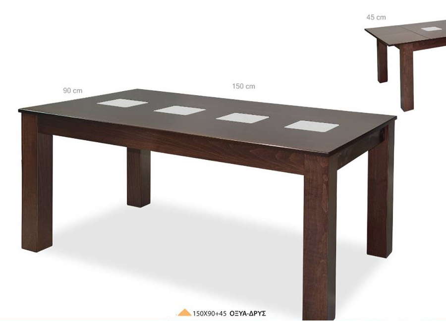 Όμορφα και με στυλ τραπέζια για σαλόνια σε χαμηλές τιμές και πολύ καλή ποιότητα κατασκευής. Τραπέζια που εναρμονίζονται τέλεια με τα υπόλοιπα έπιπλα του καθιστικού σας και δημιουργούν ξεχωριστή αίσθηση με τον σχεδιασμό τους. Τραπέζι απο οξιά ή δρυς σε χρώμα επιλογής σας σε απλή γραμμή με 4 τζαμάκια αμμοβολή στο καπάκι. Παράγεται και σε καρυδιά ή χρώμα λάκας κατόπιν παραγγελίας.