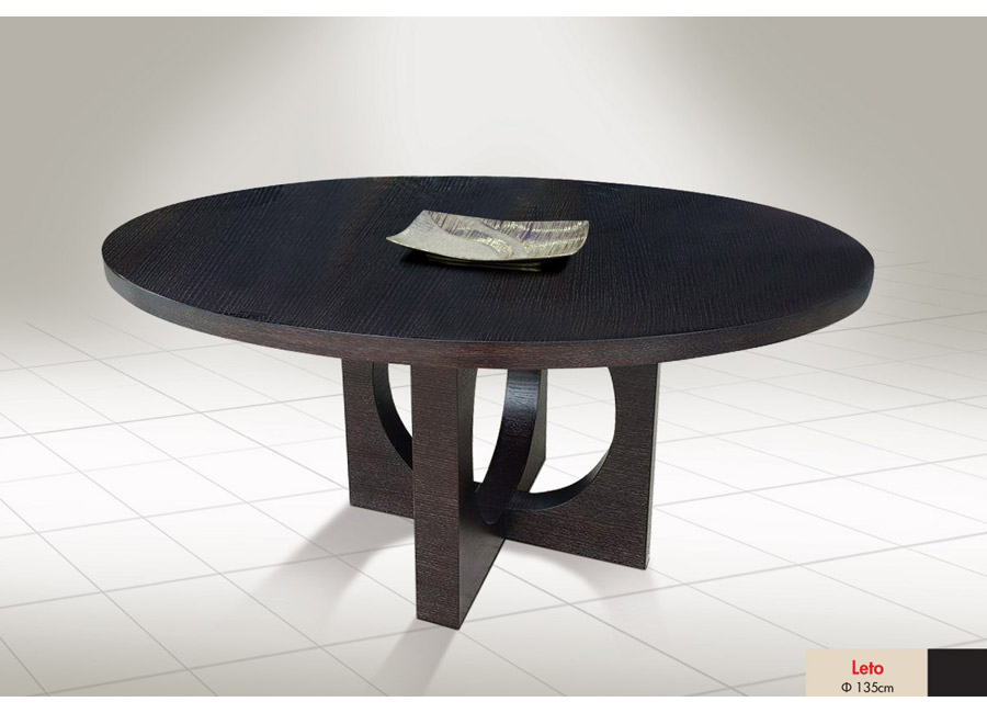 Ένα τραπέζι σε πολύ σύγχρονο σχεδιασμό, το οποίο αν συνδυαστεί με τις ανάλογες καρέκλες απο την πλούσια ποικιλία μας θα δώσετε στον χώρο σας μοναδικό στυλ. Το συγκεκριμένο προιόν παράγεται με στρογγυλό καπάκι, αλλά το στοιχείο που το κάνει να μοιάζει ξεχωριστό είναι η βάση του με την εντυπωσιακή σχεδίαση σε σχήμα σταυρού. Κατασκευάζεται από οξιά ή δρυς σε χρώμα επιλογής σας ή και σε καρυδιά ή χρώμα λάκας κατόπιν παραγγελίας. Διάμετρος τραπεζιού: 135 cm