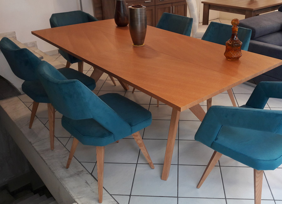Εντυπωσιακά σχέδια και χρώματα σε τραπέζια για τον χώρο του καθιστικού με ξεχωριστή σχεδίαση. Τραπέζι για την τραπεζαρία σας που αν συνδυαστεί με τις ανάλογες καρέκλες δημιουργούν αίσθηση πολυτέλειας. Παράγεται σε 3 διαστάσεις σε χρώμα ξύλου επιλογής σας από το χρωματολόγιό μας και μπορείτε να επιλέξετε ανάμεσα σε πέντε τύπους από καπάκια για να επιτύχετε το καλύτερο αποτέλεσμα βασισμένο στα δικά σας γούστα. Η τιμή του τραπεζιού είναι για διάσταση 180 Χ 090 cm.