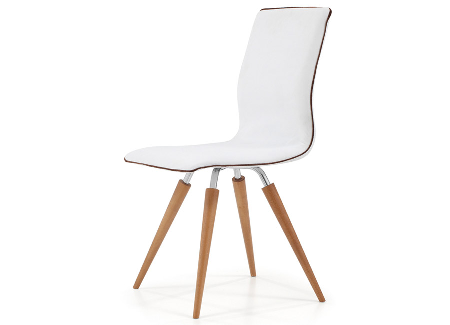 Μοναδικές δημιουργίες και ποιοτικές επιλογές με την σφραγίδα της εταιρίας μας. Καρέκλα εξαιρετικής σχεδίασης και αισθητικής που κατασκευάζεται σε 4 εκδοχές: με απλό κάθισμα και πλάτη, με φυτίλι περιμετρικά, με οριζόντιες ραφές σε κάθισμα και πλάτη ή με ξύλινη επένδυση στο πίσω μέρος. Εντυπωσιακό στοιχείο επίσης είναι η μεταλλική βάση ακριβώς κάτω από το κάθισμα που καταλήγει σε 4 κωνικά ξύλινα πόδια. Η τιμή της καρέκλας είναι με 3 παραλλαγές στο εμπρός μέρος καθίσματος και πλάτης. Υπάρχουν διαθέσιμες και άλλες παραλλάγες στα πόδια της καρέκλας με έξτρα χρέωση.