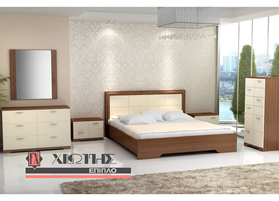 Μία ξεχωριστή εκδοχή για κρεβατοκάμαρες το επιλεγμένο μοντέλο με τις παραλλαγες του, αποτελεί ενδιαφέρουσα επιλογή. Σε φανταστική ποιότητα και με ιδιαίτερο σχεδιασμό είναι η καλύτερη λύση για τον προσωπικό σας χώρο. Αποτελείται από κεφαλάρι με ύφασμα ή δερματίνη επιλογής σας ή ξύλινο ταμπλά σε δρυς σε χρώμα βέγκε ή καρυδιά με δυνατότητα διχρωμίας με λάκα (για στρώμα 160 × 200). Περιλαμβάνει: κρεβάτι, 2 κομοδίνα, τουαλέτα με σκαμπώ και καθρέπτη. Παράγεται επίσης και συρταριέρα ή καθρέφτης δαπέδου και έχει την δυνατότητα να πάρει μηχανισμό με αποθηκευτικό χώρο με έξτρα χρέωση.
