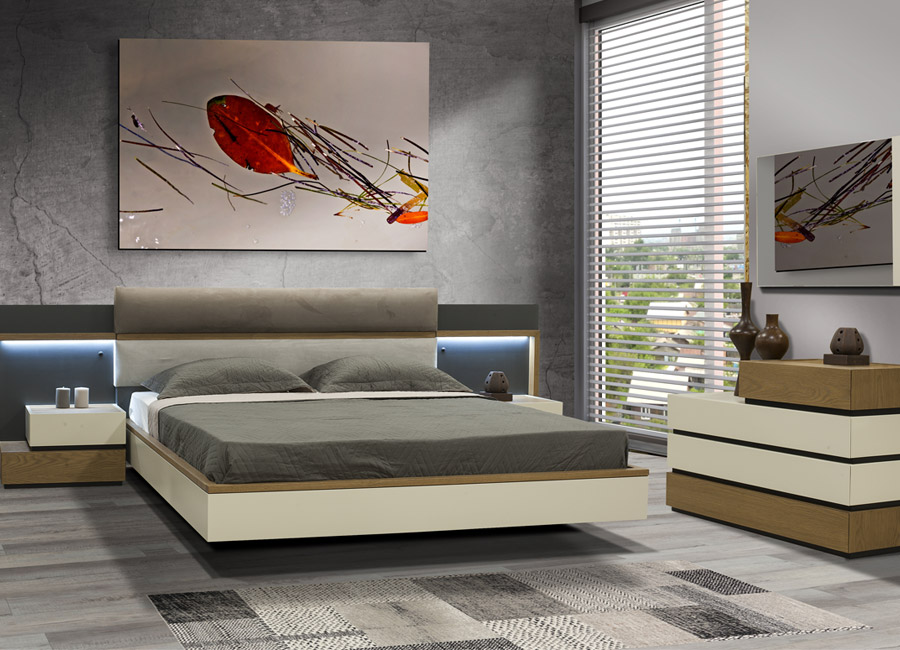 Μία πραγματικά μοναδική σε σχεδιασμό και ποιότητα κρεβατοκάμαρα που θα κάνει ιδιαίτερη αίσθηση με το στυλ της. Με εντυπωσιακές γραμμές σε κεφαλάρι και ποδαρικό και ξεχωριστές λεπτομέρειες για όμορφες προσωπικές στιγμες ξεκούρασης. Ένα αληθινά πρωτότυπο μοντέλο για κρεβατοκάμαρες για τον προσωπικό σας χώρο. Παράγεται απο δρυς σε χρώμα επιλογής σας ή ακόμη και σε διχρωμία σε χρώμα λάκας κατόπιν παραγγελίας. Παιρνει προαιρετικά και μηχανισμό με αποθηκευτικό χώρο με εξτρά χρέωση. Περιλαμβάνει: κρεβάτι (για στρώμα: 160 × 200), 2 κομοδίνα, τουαλέτα και καθρέπτη.