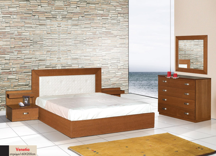 Εξαιρετικά χαμηλή τιμή για έπιπλο κρεβατοκάμαρας με λιτή γραμμή και ποιότητα κατασκευής. Δημιουργούμε μοναδικές κατασκευές με υλικά ποιότητας για αντοχή στον χρόνο. Το κεφαλάρι του κρεβατιού μπορεί να ντυθεί με ύφασμα ή δερματίνη της επιλογής σας και τα κομοδίνα εκτός των συρταριών έχουν και εξτρά ραφάκια για να τοποθετείτε διάφορα διακοσμητικά. Κατασκευάζεται από οξιά ή δρυς σε χρώμα επιλογής σας ή και σε χρώμα λάκας ή επένδυση καρυδιάς κατόπιν παραγγελίας (για στρώμα: 160 × 200). Προαιρετικά μπορεί να πάρει και μηχανισμό με τελάρο για δημιουργία αποθηκευτικού χώρου με επιπλέον χρέωση. Περιλαμβάνει: κρεβάτι, 2 κομοδίνα, τουαλέτα και καθρέπτη.